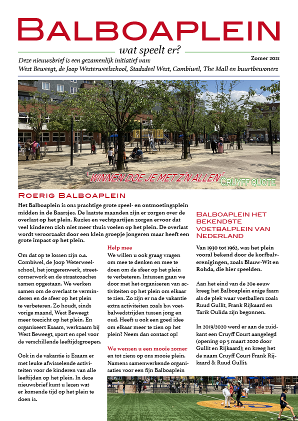 Ter bevordering van sport op het Balboaplein in Amsterdam West.